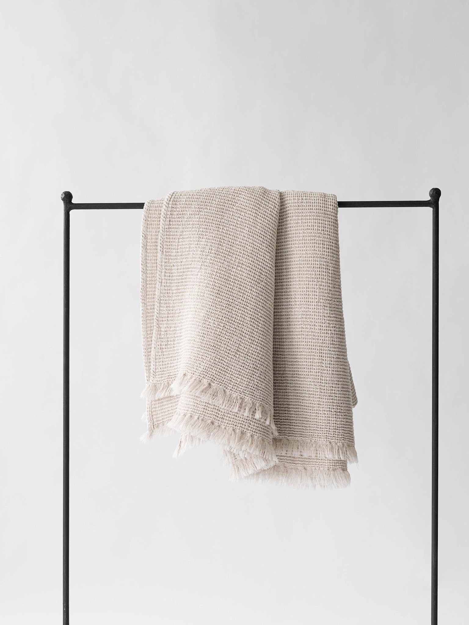 Calma is a classic beige plaid with a waffled texture. The blanket is a mix of 80% cotton and 20% linen, which makes it soft and comfortable and just the right amount of warmth. The Calma plaid has decorative fringes along the short sides and a narrow hem along the long sides. The plaid is just as beautiful on the sofa as it is on the bed.