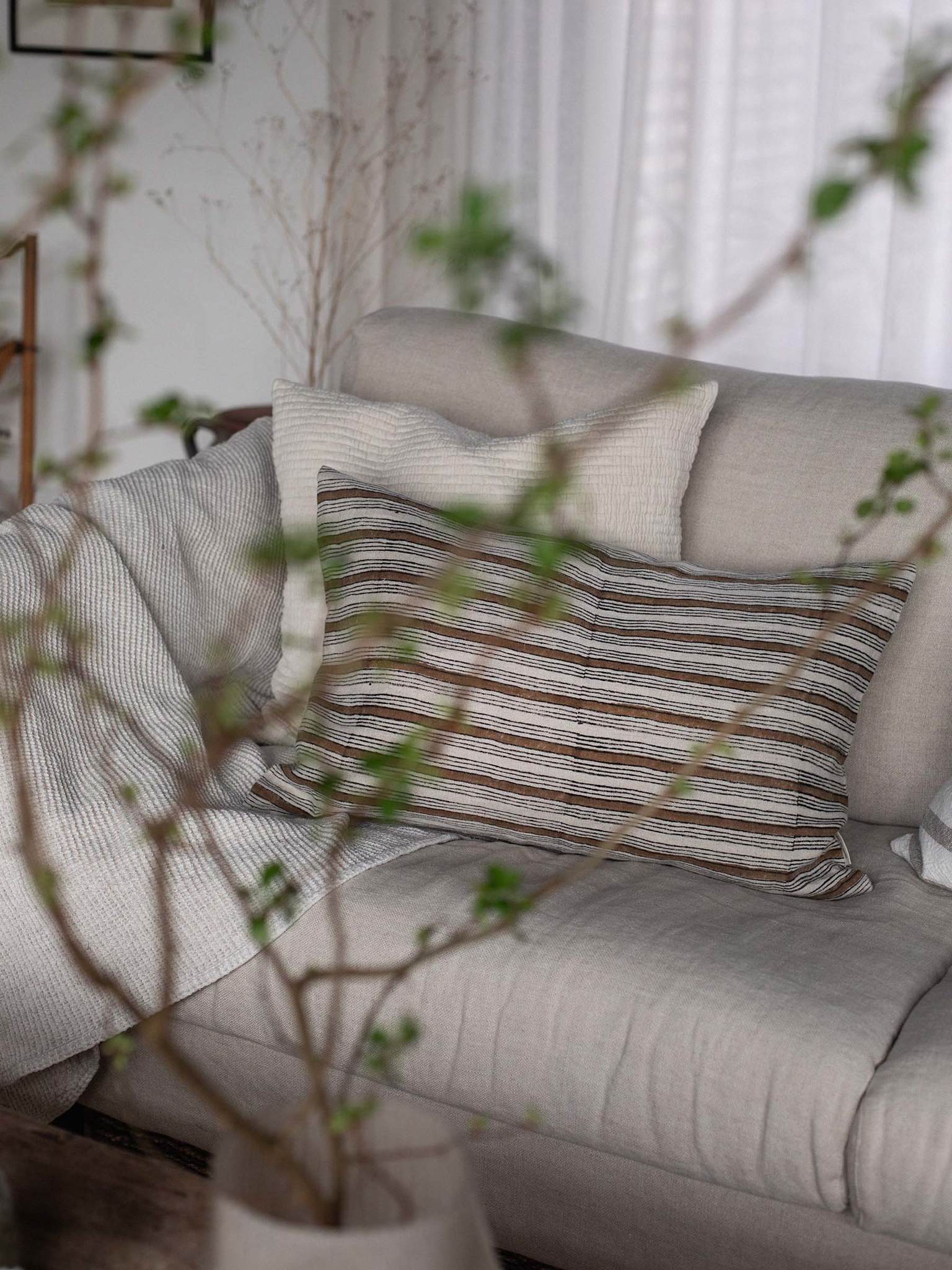 Beautiful cushion covers 40x60 in 100% linen with block print patterns. Block printing is a traditional technique that has been used for many years and is done by hand. The pattern and stripes on the Dino cushion cover are created by block printing, where patterns are cut out of wooden blocks, which are then dyed and printed onto the fabric in layers. Each cushion cover is made by hand and the texture, color and block print may therefore differ slightly from the pictures. Our Dino cushion covers are perfect for both the sofa and the bed and can be mixed with other beautiful decorative cushions and pillowcases. The cushion covers close with a discreet zipper at the bottom and come without an inner cushion. Our
