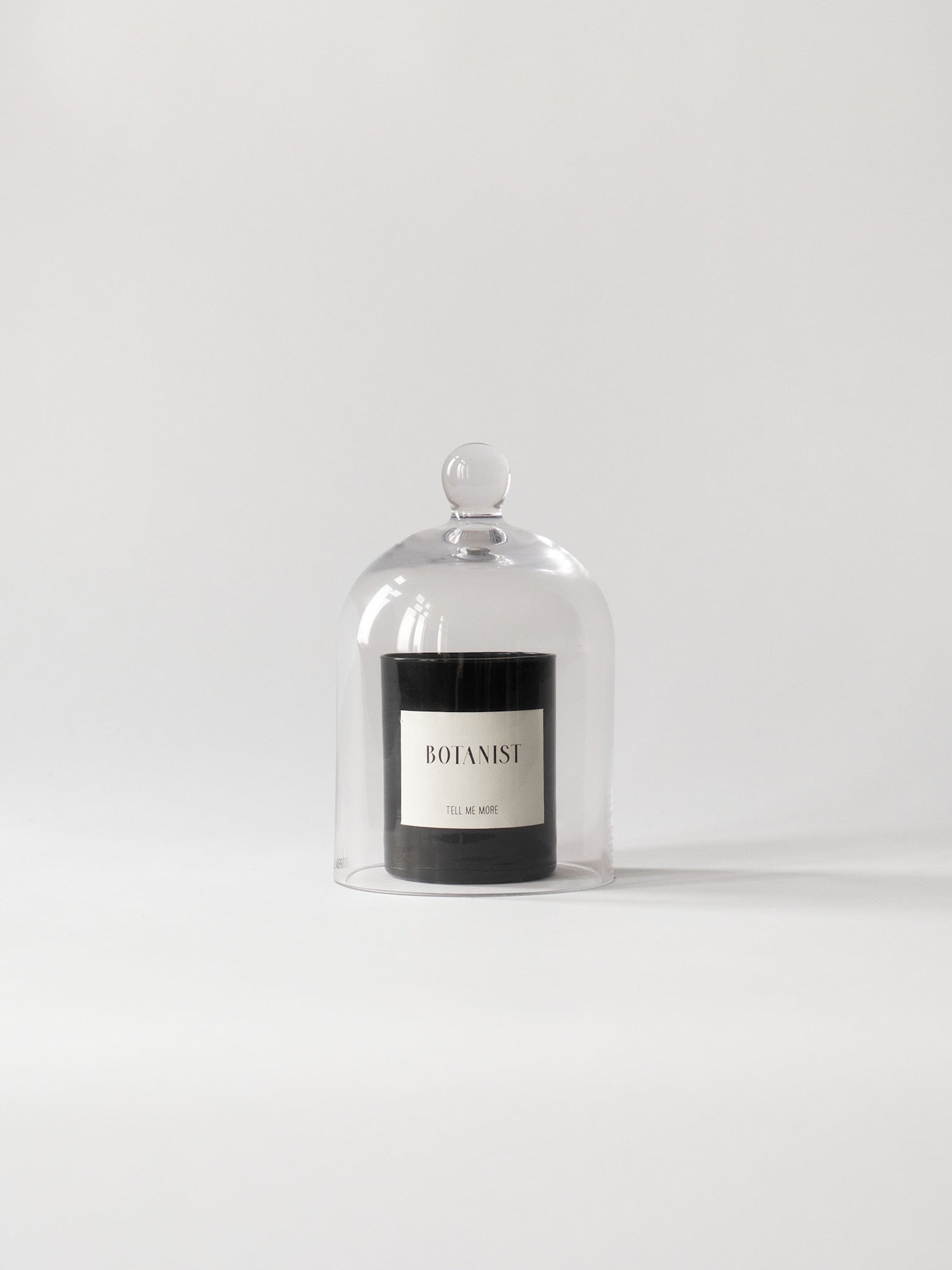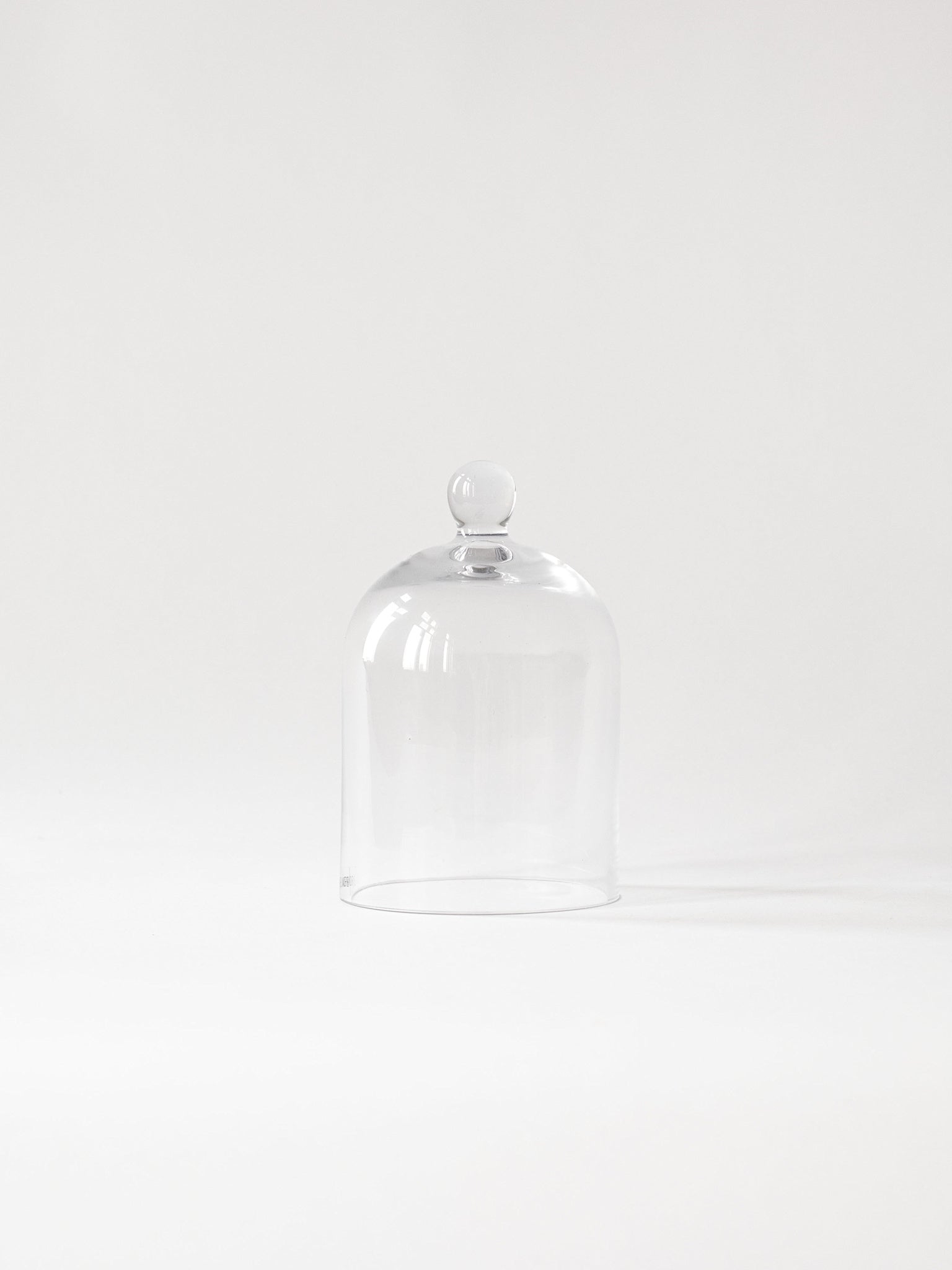 Decorative transparent glass dome made of recycled glass. The dome is perfect for displaying scented candles or decorations in a creative and beautiful way. The glass dome is made of clear glass and has a decorative knob at the top.