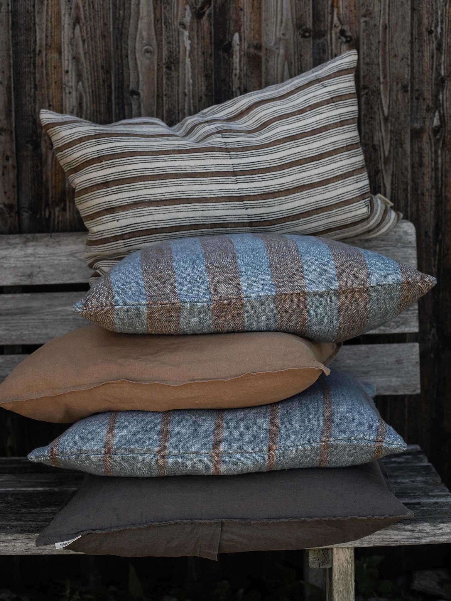 Timeless cushion cover 50x50 in coarse linen with narrow stripes. Melvin cushion cover has a vibrant color tone with different variations and shades in the fabric. The fabric used is handwoven, which makes each cushion cover unique and the texture, color and shape may therefore differ slightly from the pictures. Melvin is perfect for both the sofa and the bed and can be mixed with other beautiful decorative cushions. The cushion cover closes with a discreet zipper at the bottom. Inner cushion 50x50cm is sold separately.